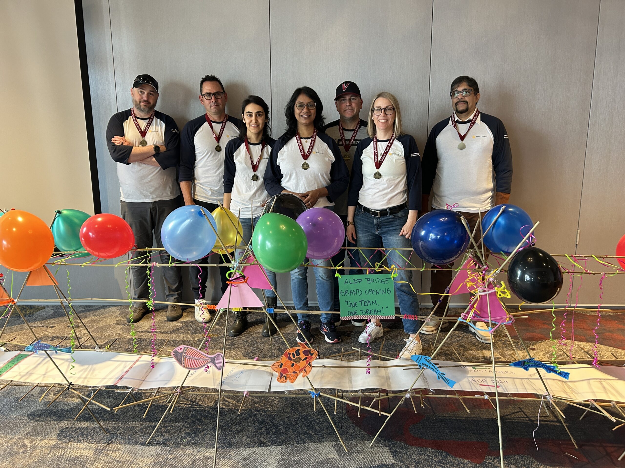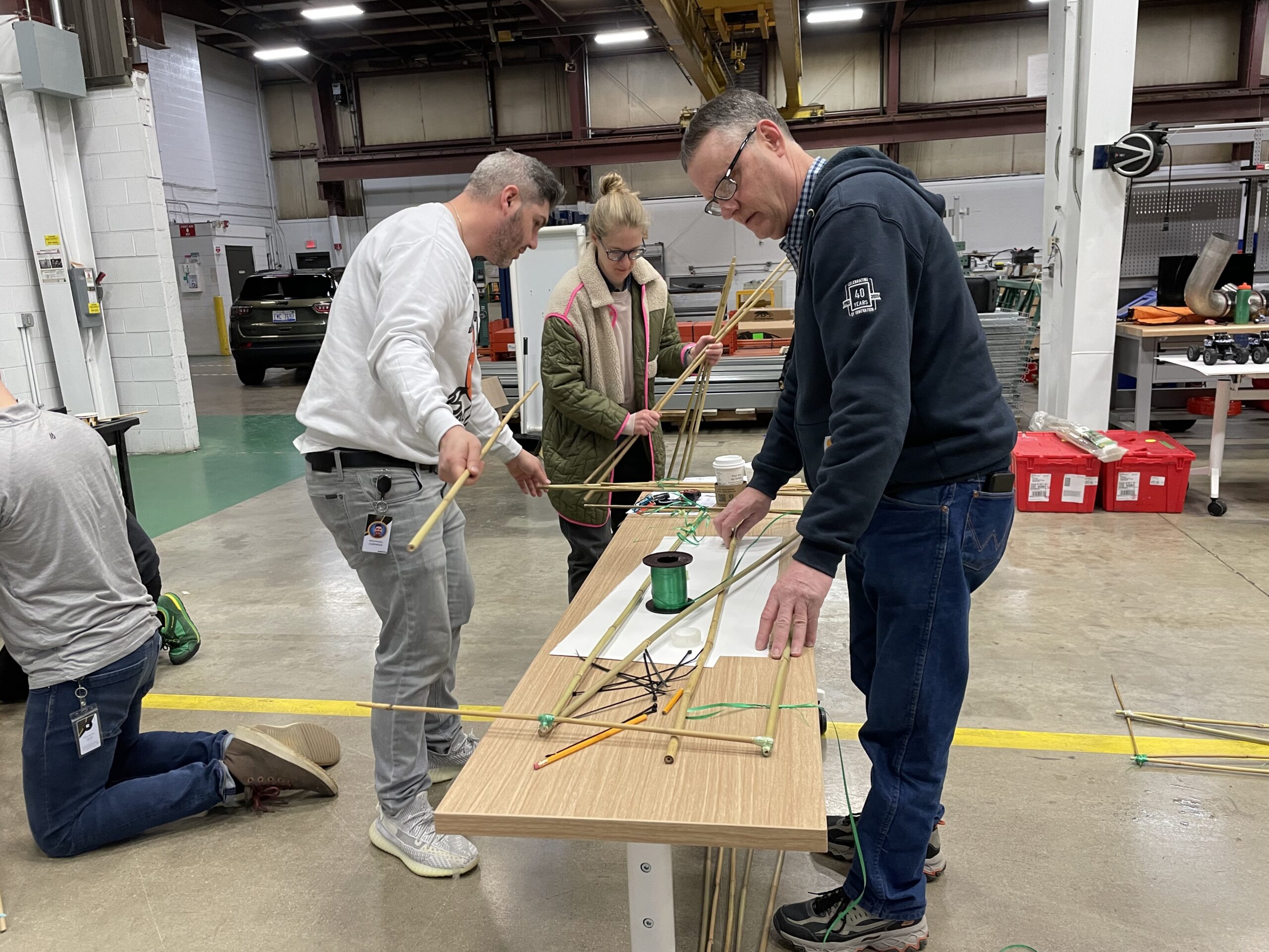 Bridge Builders is an indoor activity available anywhere in North America, any time, and for any group size. In this activity, teams collaborate and communicate as they design and build a free-standing bridge.