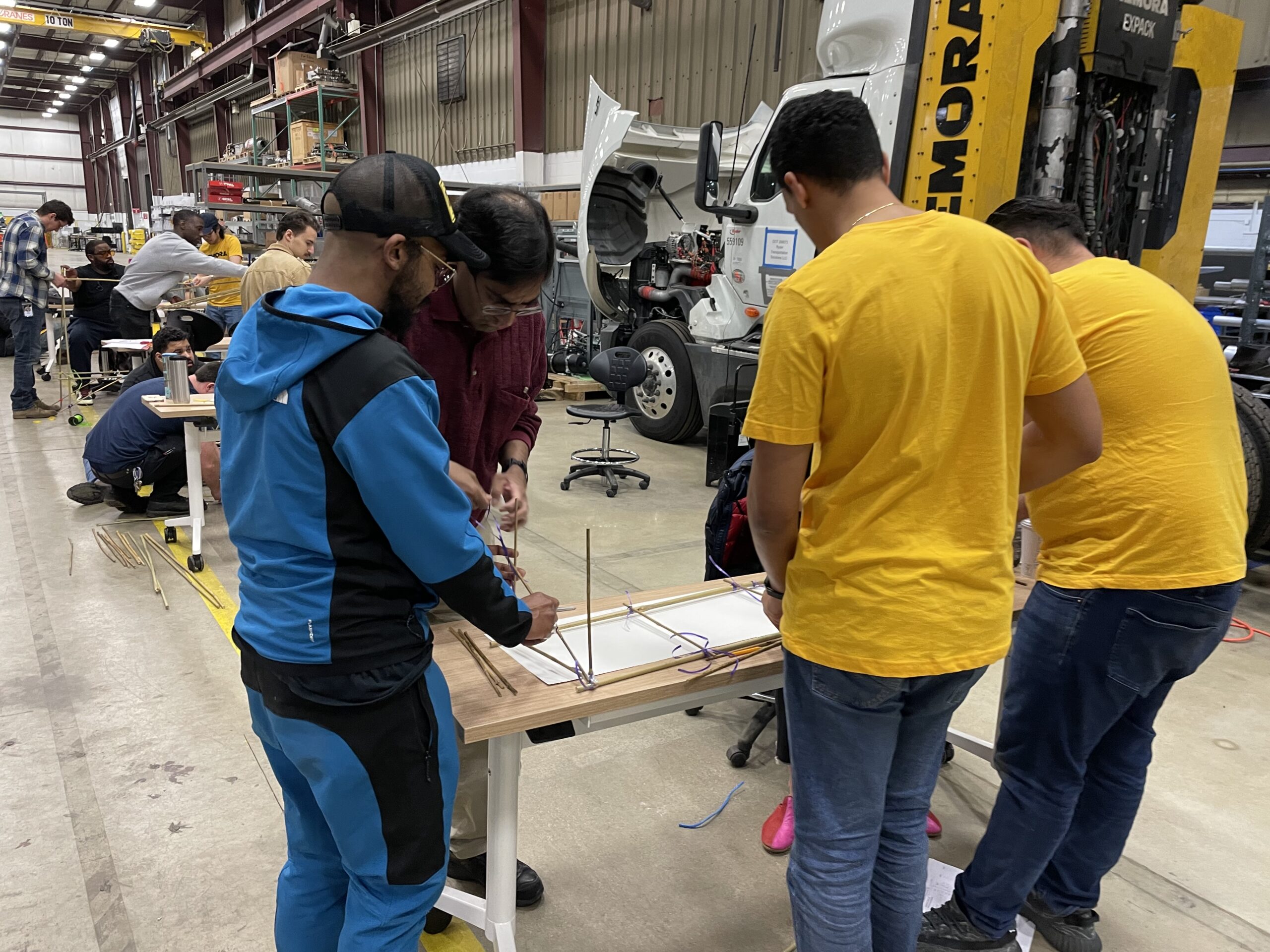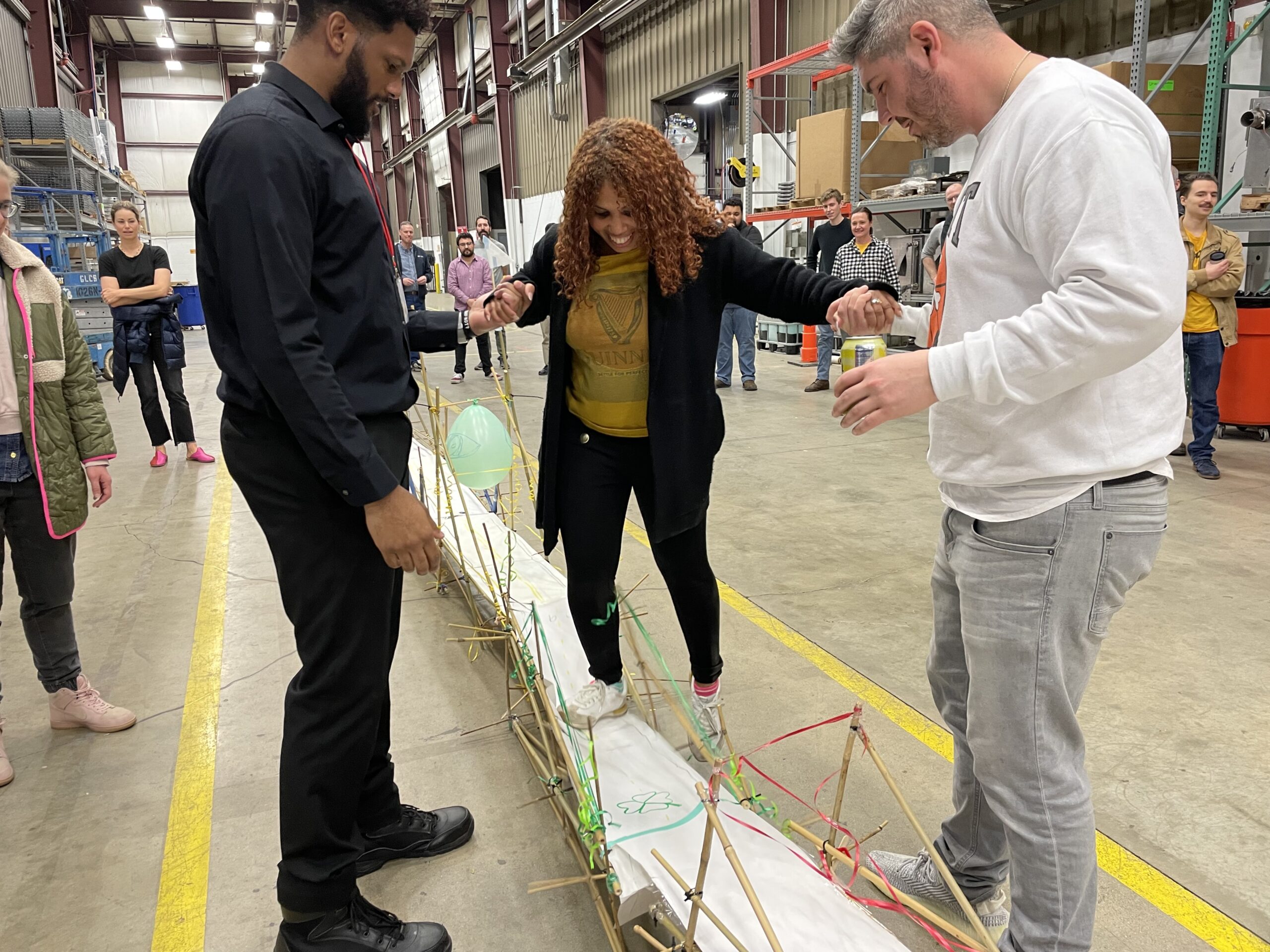 The event host provides instructions for the mission: design and build a sturdy, fully-functional, free-standing bridge. Teams prepare to unleash their creativity and teamwork skills.